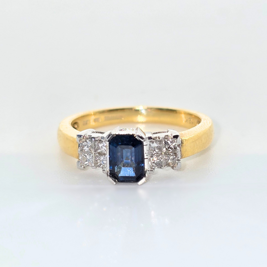 Luxury 18kt Yellow Gold Sapphire and Princess Cut Diamond Ring