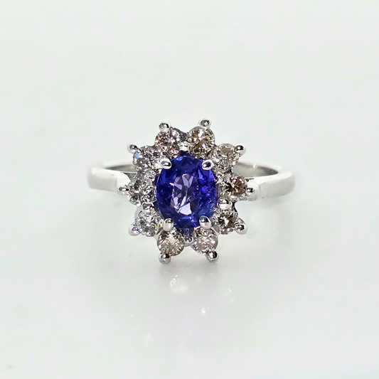 1.9ct Natural Oval Tanzanite & Diamond Ring in 18K White Gold – Solitaire with Accents