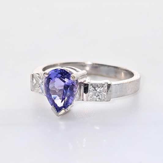 18kt White Gold Pear Cut Tanzanite & Diamond Ring 1.3tcw