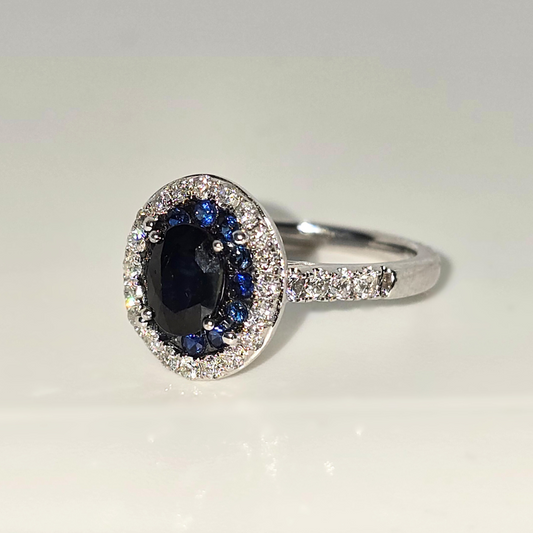 18kt White Gold Ring with Natural Sapphires and Diamonds