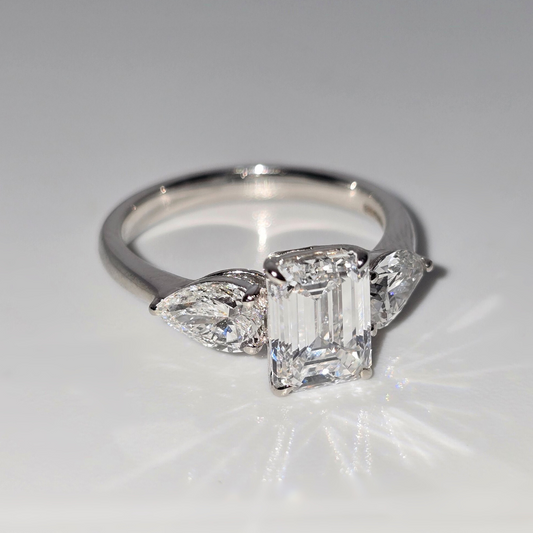3.08 Emerald Cut Lab Diamond Engagement Ring with Pear Sides