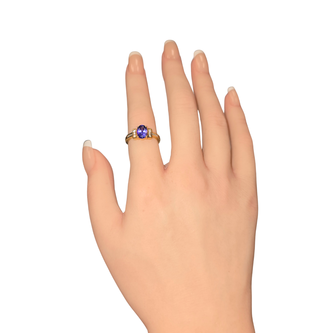 1.10ct Oval Natural Tanzanite & Diamond Ring in 18ct Yellow Gold