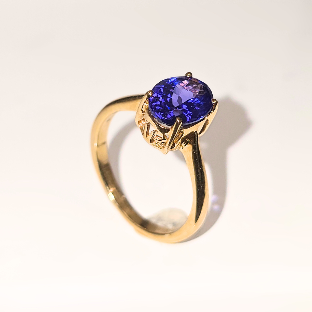 1.7ct Oval Cut Tanzanite Solitaire Ring in 18ct Yellow Gold