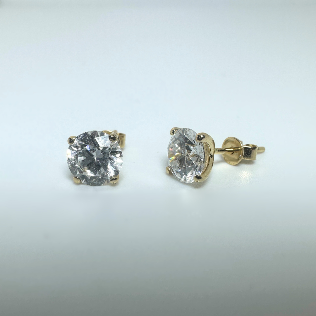 14ct Yellow Gold Lab Grown Diamond Stud Earrings 2.13ct D VS Certified Round Brilliant