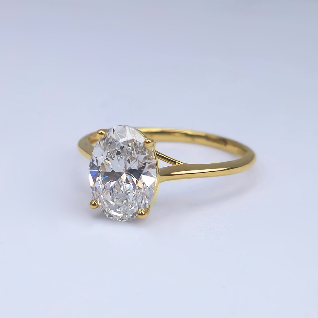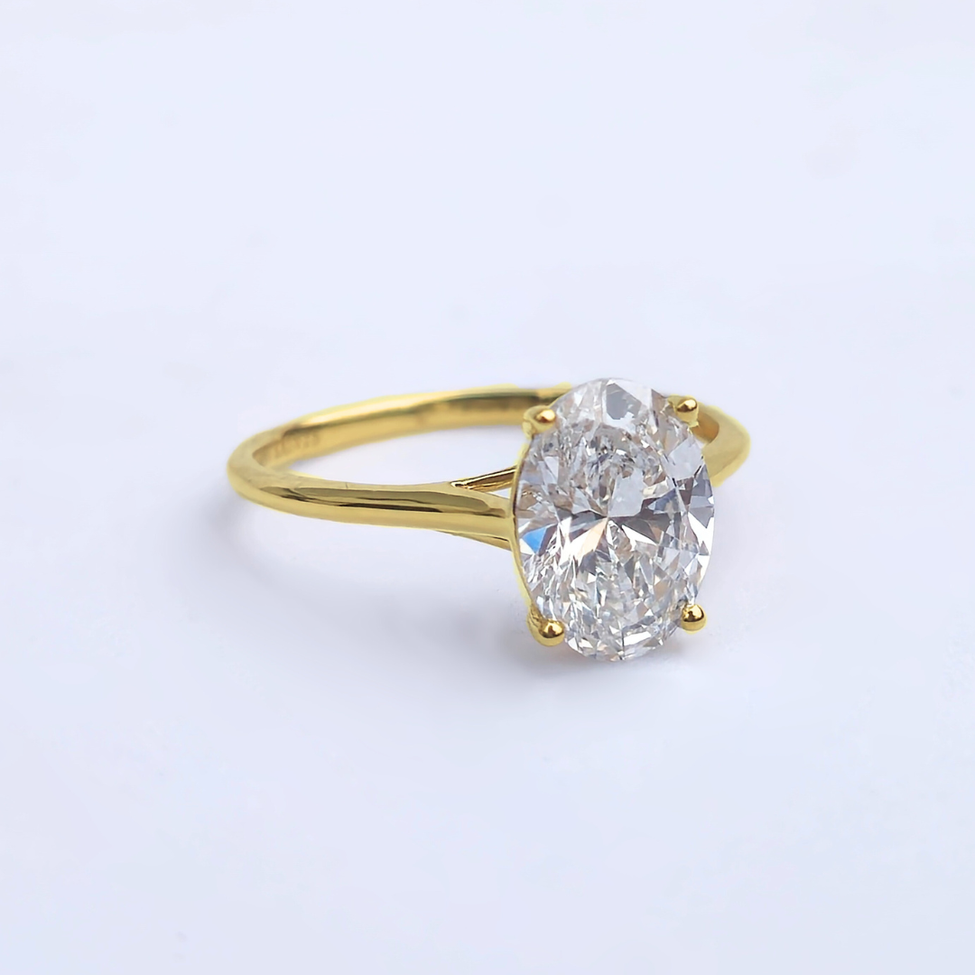 2.01ct Oval Cut Lab-Grown Diamond Solitaire Ring – VS1 E Colour | 14ct Yellow Gold | IGI Certified