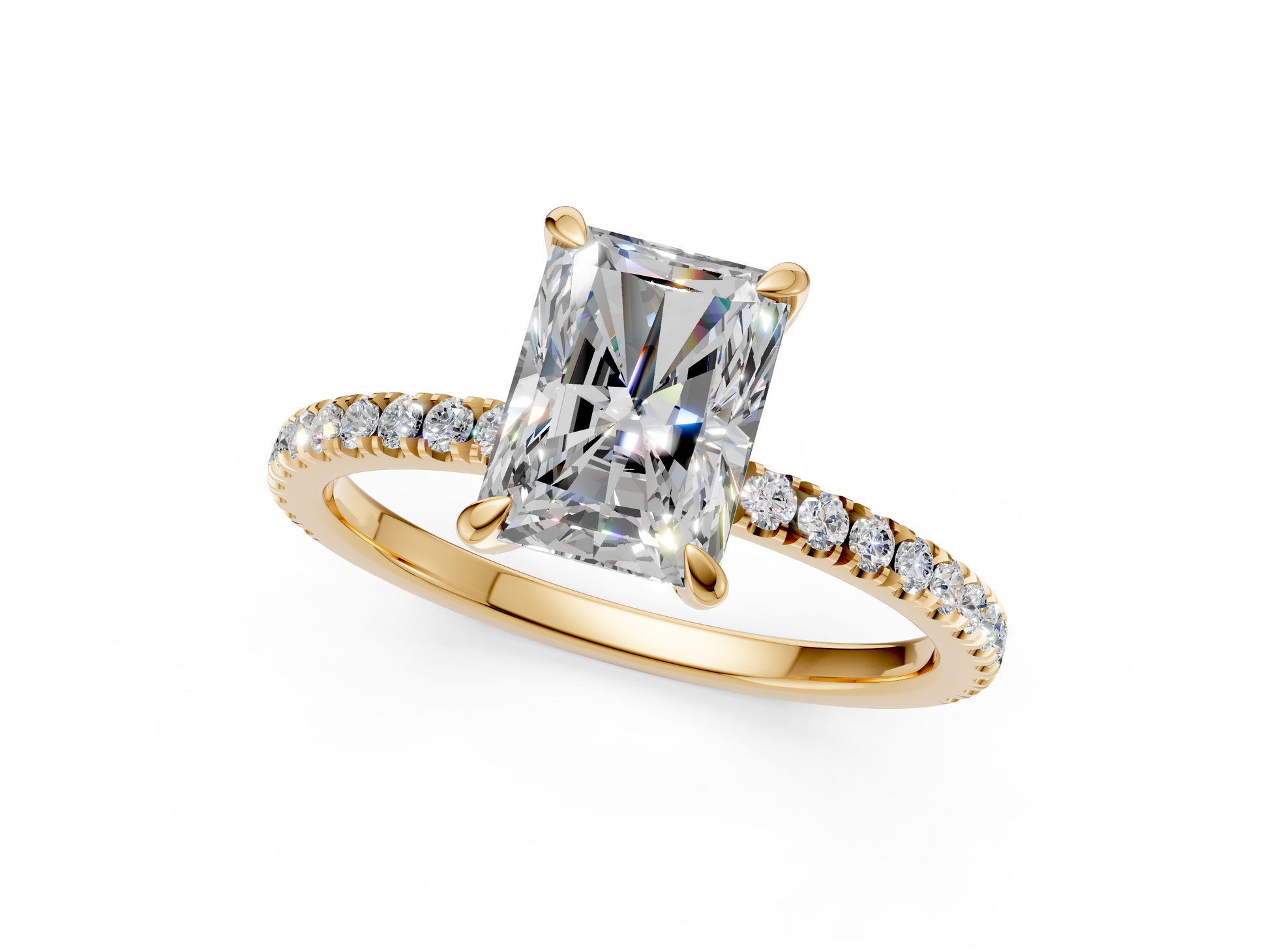 This customizable diamond ring features a striking 3.0ct radiant cut lab grown diamond in the center, graded D colour and VS1 clarity, and certified by IGI for authenticity and quality. The solitaire design is enhanced with approximately 0.5cts of side diamonds in VVS–VS clarity and D–F colour, bringing the total carat weight to 3.5cts.